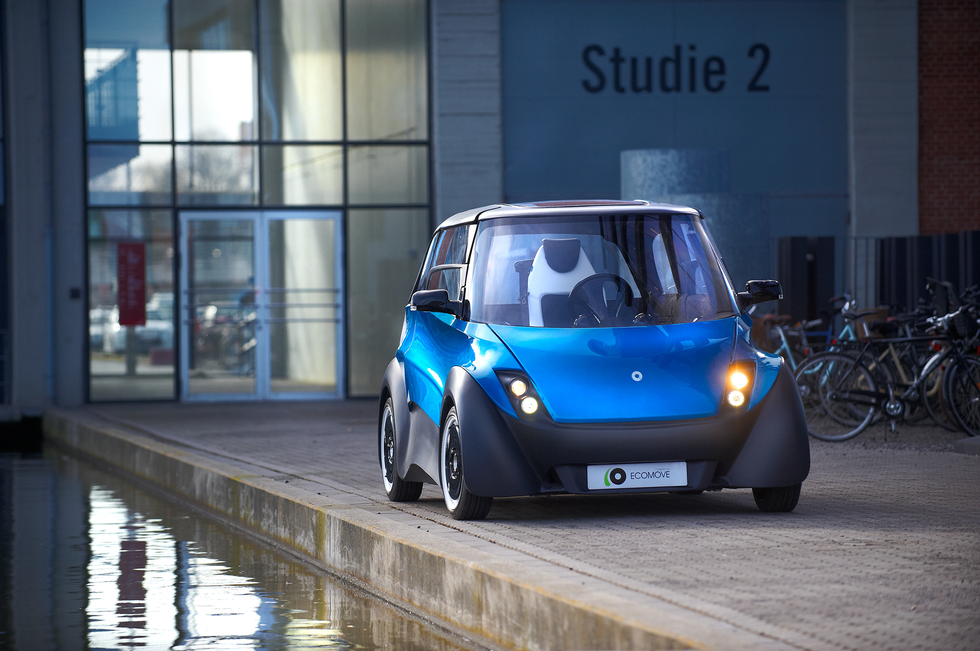 The Qbeak is designed to be small on the outside but spacious inside, it has numerous innovative features, and to achieve a more spacious interior and optimize weight distribution the battery storage is placed under the floor of the cabin and the motors are placed inside the wheels, this gave a lot more design freedom, and optimal use of the complete length and width of the car.
