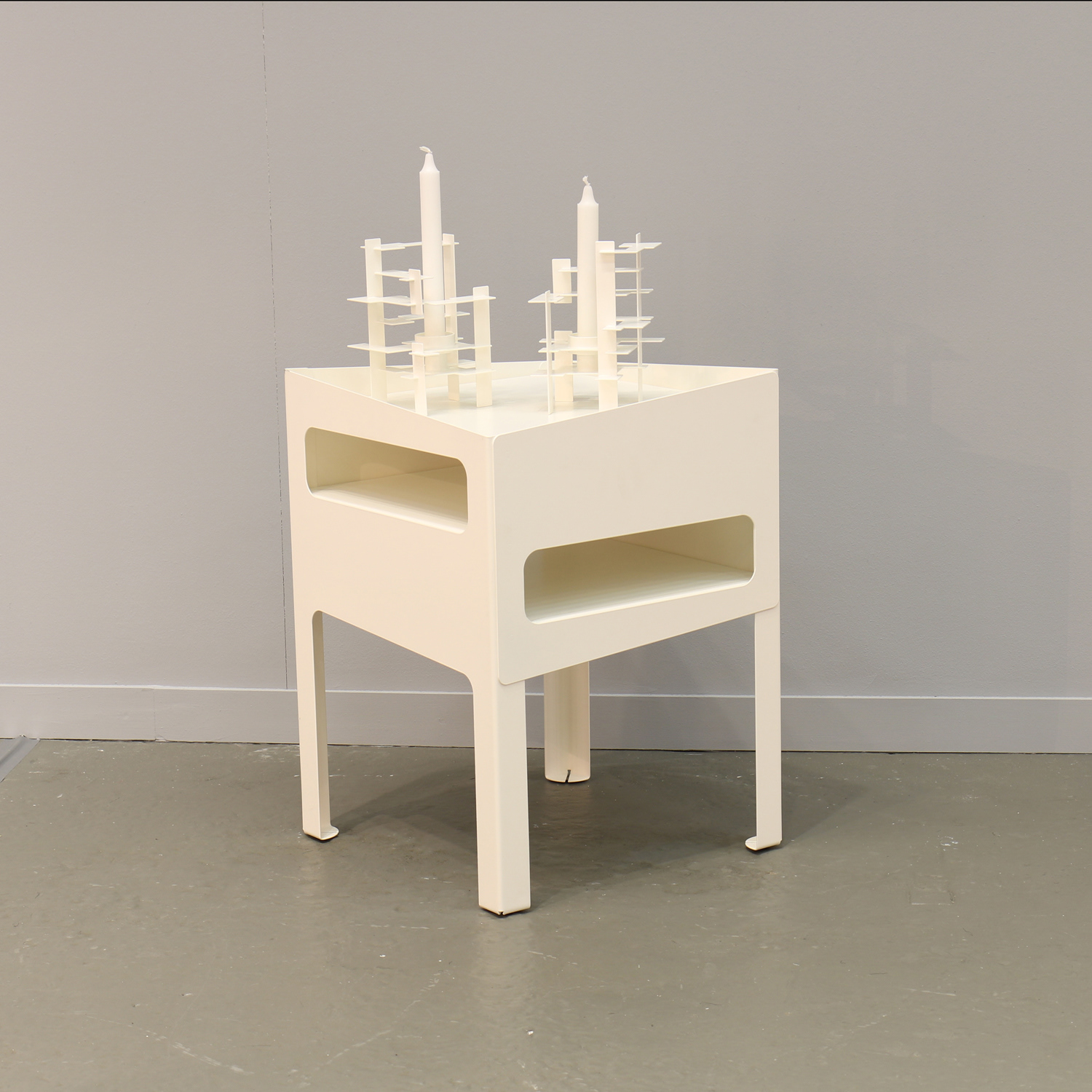 The Trick Table is a small side table/bedside table, the table is designed to create an optical illusion/trick, hence the name Trick Table.